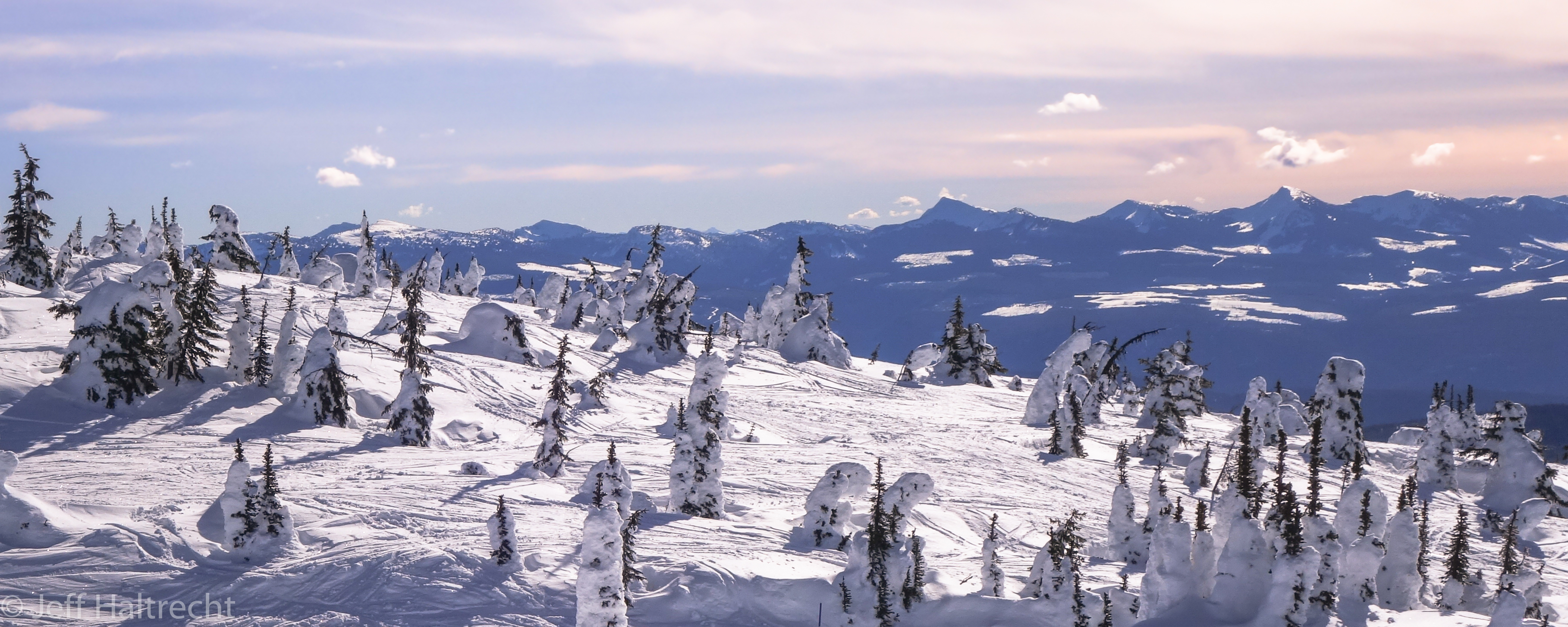 This is the peak of Big White looking West to the Monashee mountains across what they call the ‘Enchanted Forest’. The previous day it snowed like crazy, and this next day we skied powder top to bottom. The trees when covered with snow are locally known as ‘snow ghosts’ – great name!