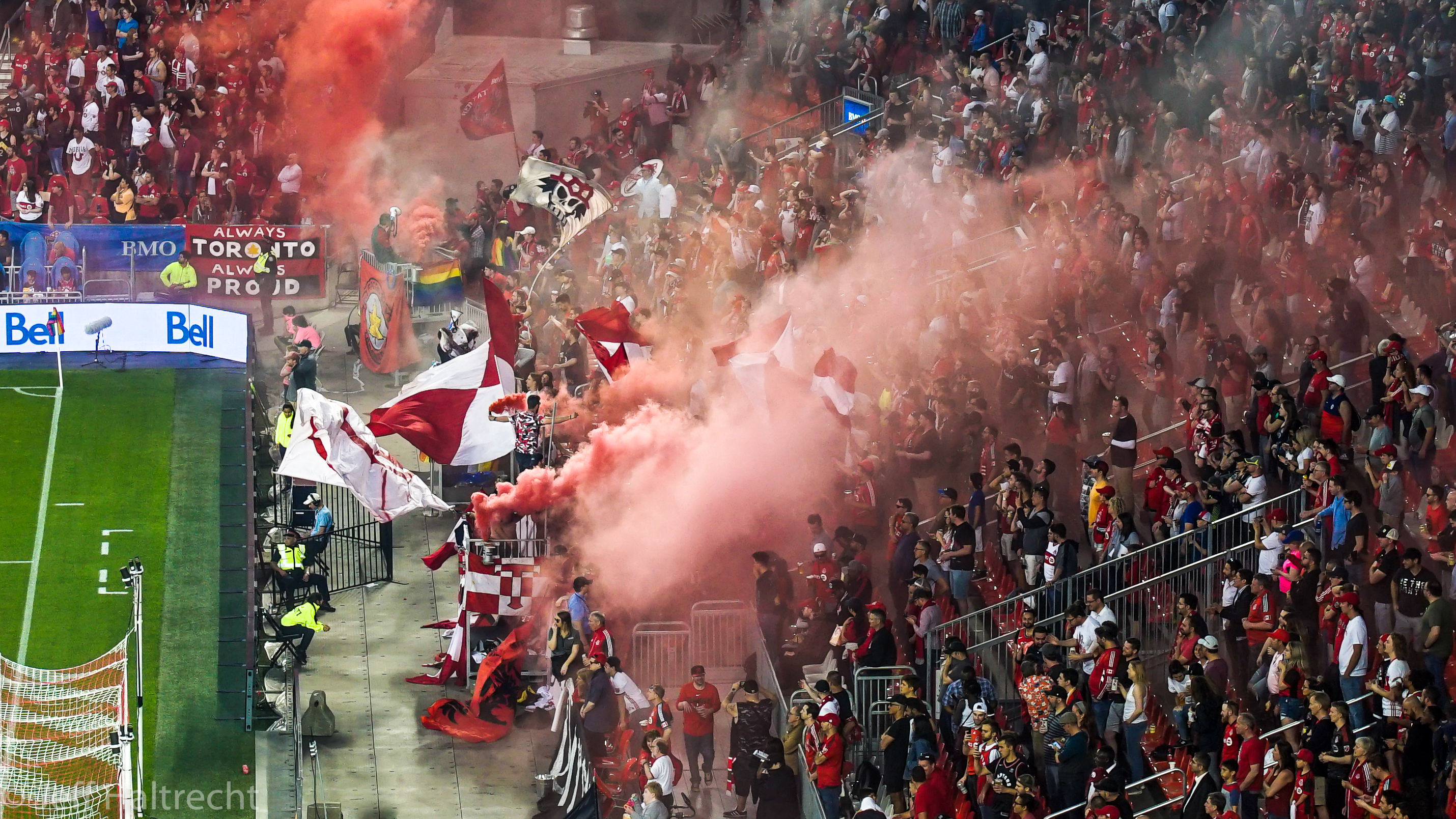 This is how you celebrate a goal at a soccer match… with smoke bombs, drums, oversized flags, and lots of cheering! Hamilton scored the tying goal for Toronto FC at 90+5 minutes of the game on June 7, 2019.